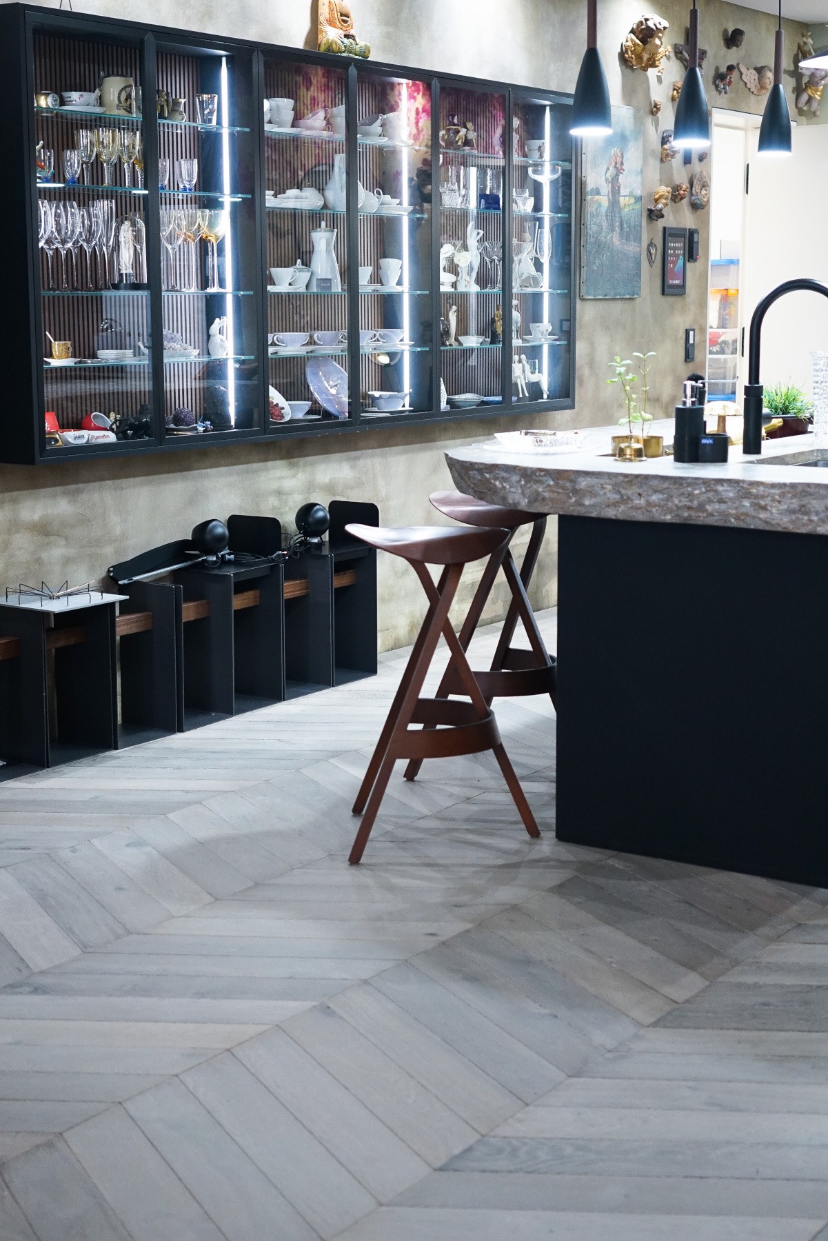 Eiche eignet sich sehr gut für die Herstellung von grauem Parkett. Dabei kommen verschiedene Verfahren zum Einsatz. Eine einfache, aber schmutzanfällige Variante ist die natürliche Vergrauung durch Pflege mit Seife. Pflegeleichter sind graue Oberflächen durch den Auftrag von pigmentiertem Hartwachsöl. Die Farbpigmente liegen eingebettet in Öl auf dem Holz. Die meisten unserer grauen Parkettböden entstehen jedoch durch das Räuchern oder Anräuchern des Holzes.