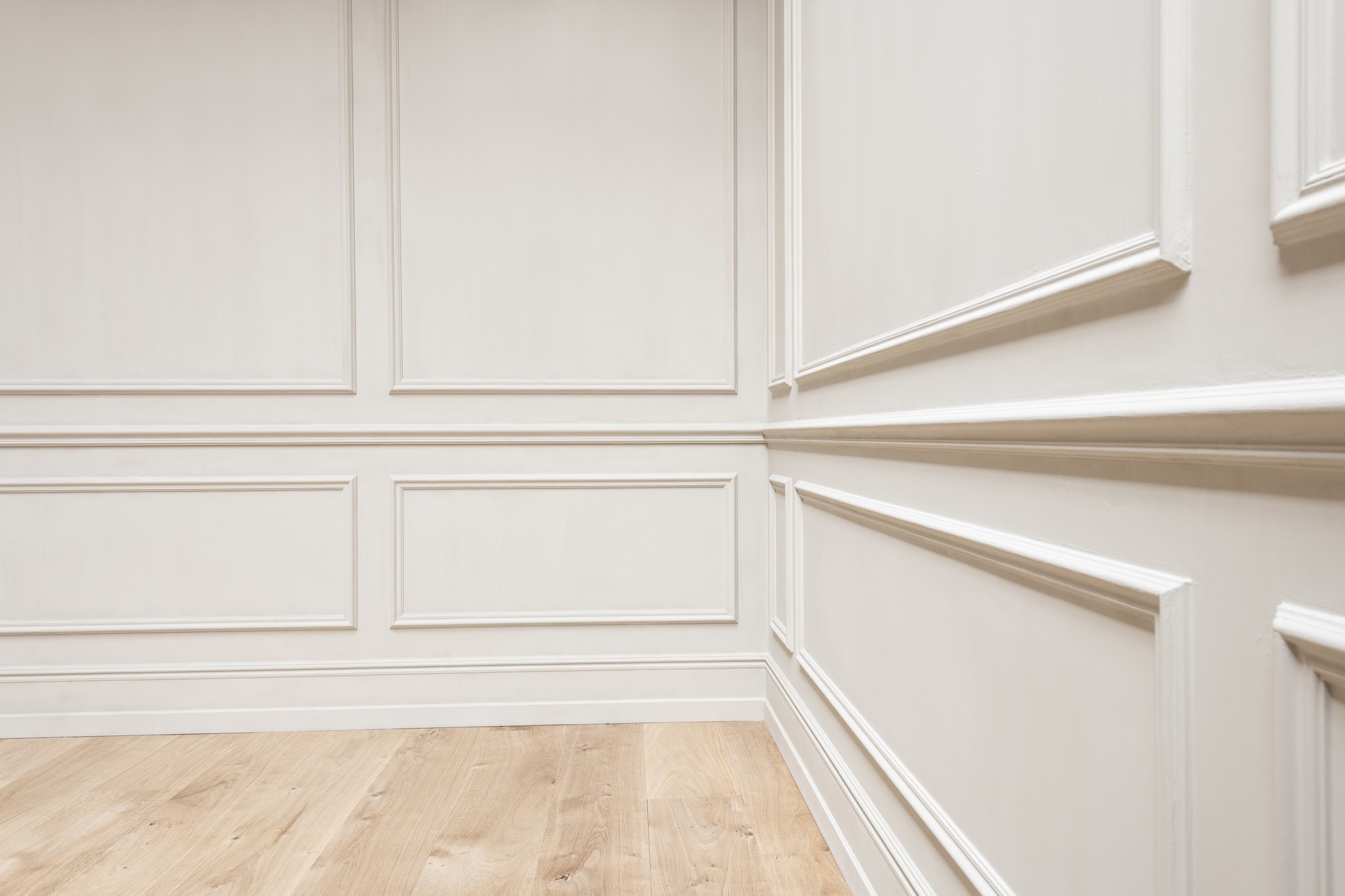 Mittels Wandleisten lässt sich die Optik eleganter Holztafeln mit weitaus weniger Aufwand erzeugen. Einfach mit Kleber montiert und in der Wandfarbe übermalt werden aus einfachen Wänden Blickfänge mit nobler 3D-Optik.