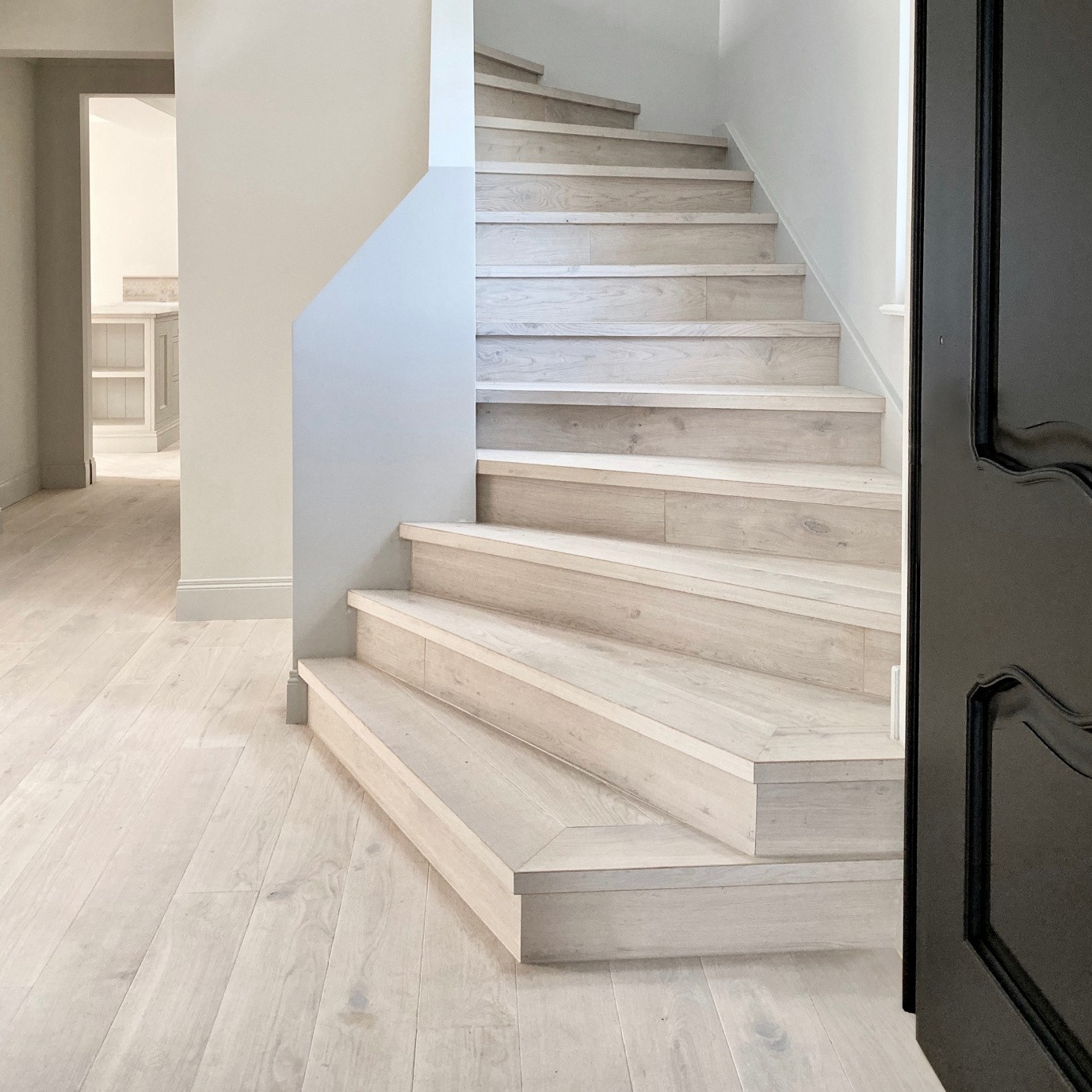 Treppe aus Parkettdielen, Eiche Polar White Noblesse