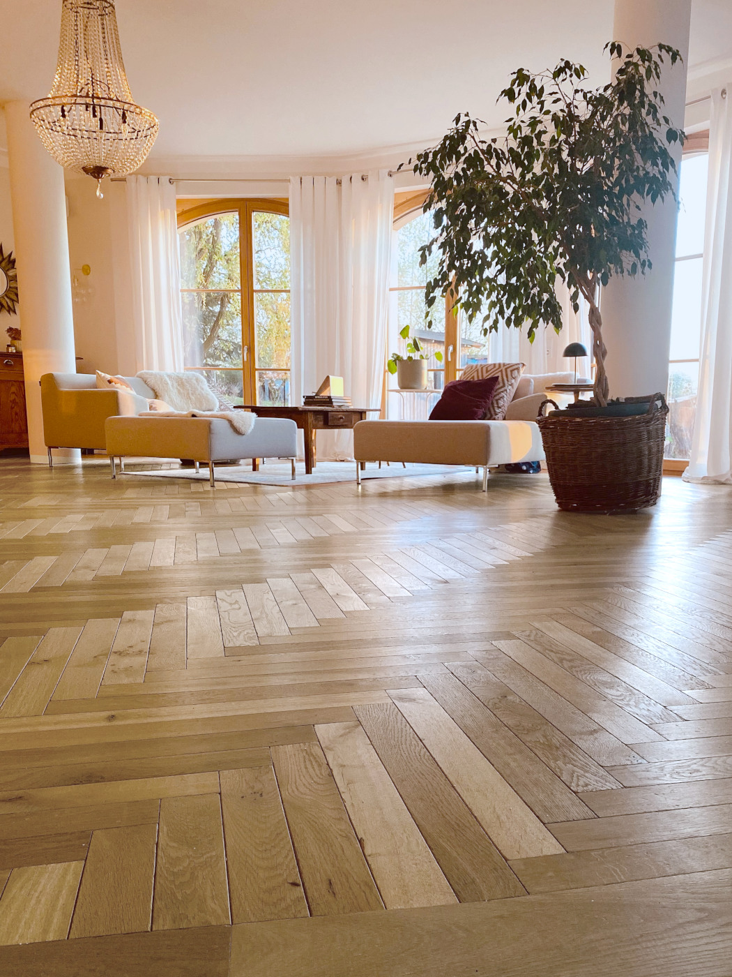Helles Fischgrätparkett mit natürlichem Charakter und antikem Charme